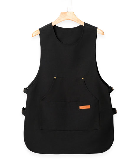 مريلة سوداء - جوانب قابلة للتعديل مع جيب أمامي متعدد الاستخدامات
