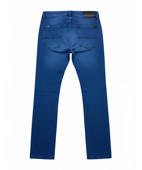 بنطلون جينز أزرق قطني ثقيل مطاطي - قصة ضيقة عادية