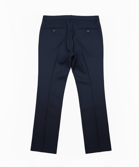بنطلون رسمي أزرق بقصة مستقيمة - قصة عادية مع حلقات حزام وجيوب جانبية