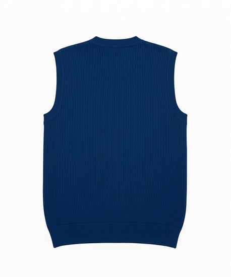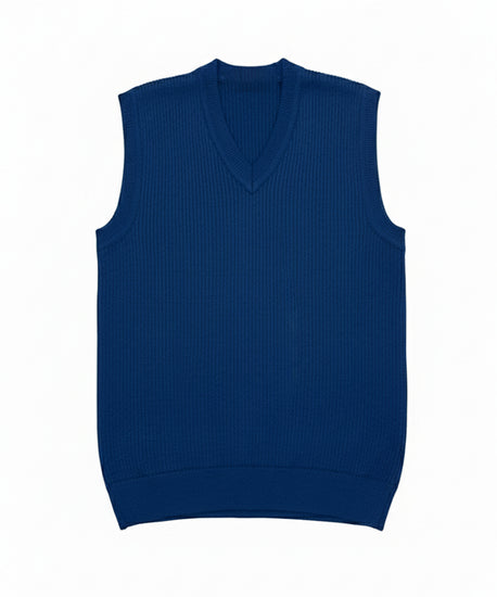 سترة زرقاء بدون أكمام - محبوكة بشكل مضلع، رقبة على شكل حرف V