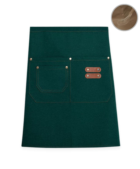 مريلة نصف قماشية خضراء مقاومة للماء - قماش مائل، جيوب متعددة، وخصر قصير