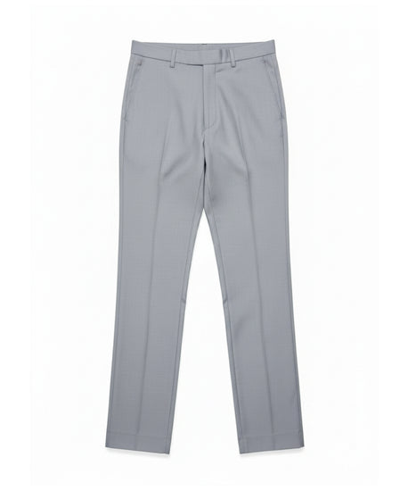 بنطلون رمادي رسمي بقصة مستقيمة - قصة عادية مع حلقات حزام وجيوب جانبية